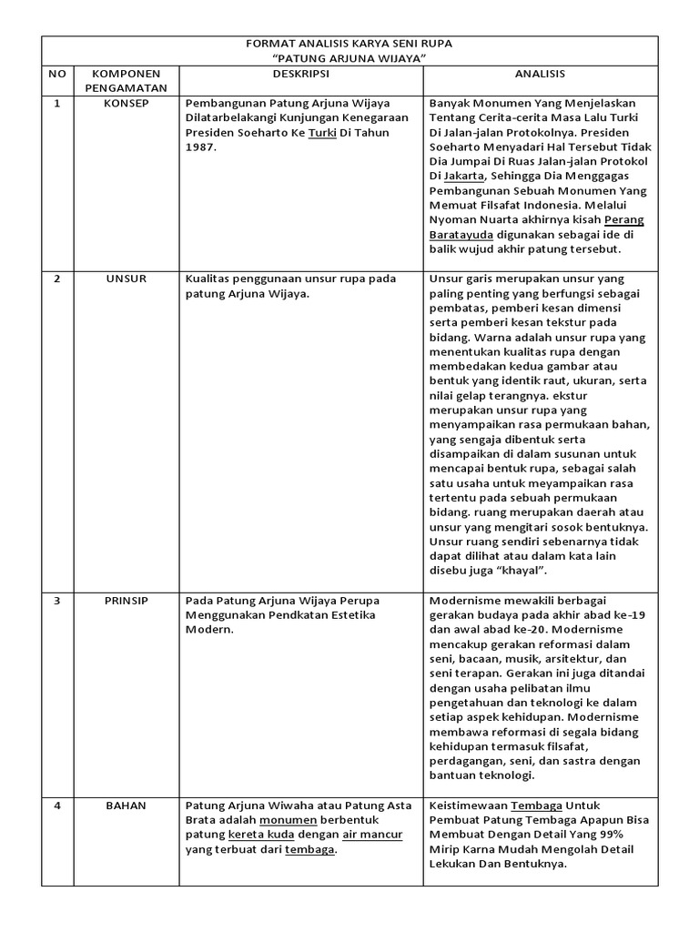 Format Analisis Karya Seni Rupa Patung Arjuna Wijaya